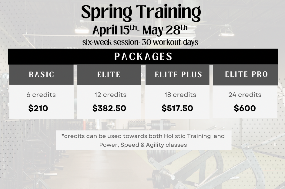 *Credits purchased can be used toward Holistic Training and Power, Speed & Agility classes.